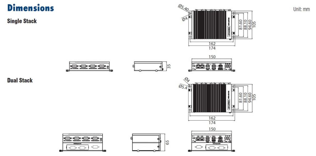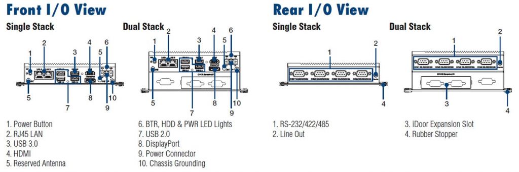 - 2 x GbE, 4 x USB, 4 x RS-232/422/485, 1 x HDMI, 1 x DP
