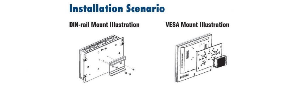 - optionales Kit für die DIN-Schienenmontage und VESA-Montage