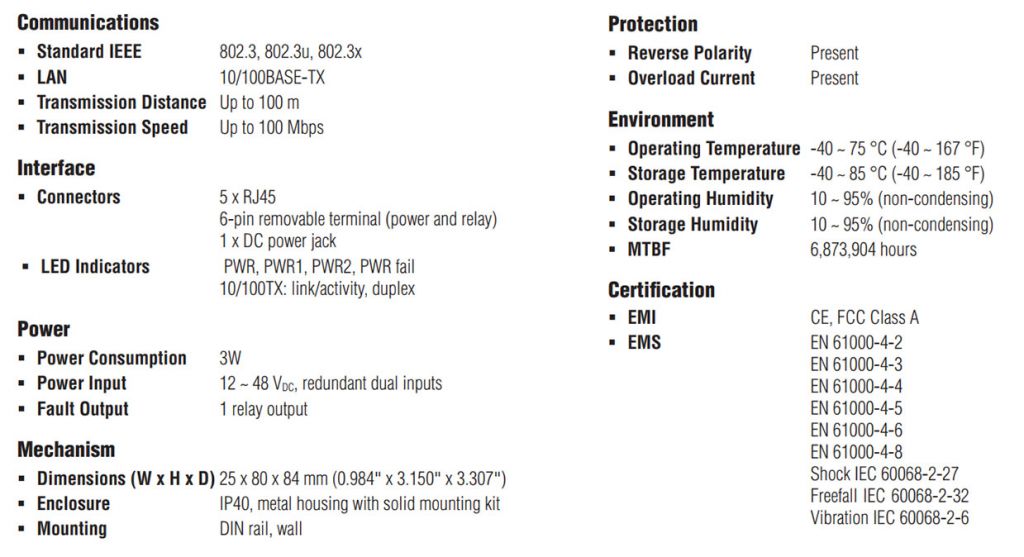 - Unterstützt redundante 12 ~ 48 VDC Stromanschlüsse plus eine DC-Strombuchse und P-Fail-Relais