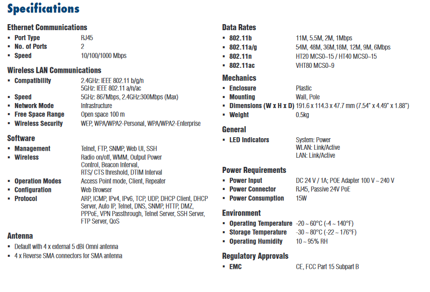 EKI-6333AC-2G - IEEE 802.11 a/b/g/n/ac Concurrent Dual-Band Wi-Fi AP/Client