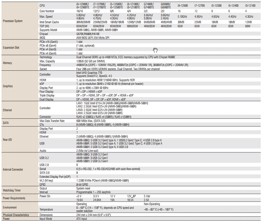 Advantech AIMB-588 Motherboard - Intel® 12th Gen Core™